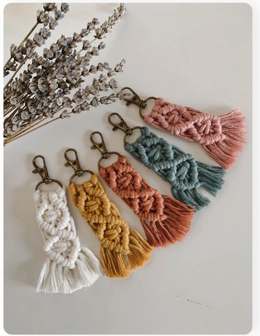 11) Le Porte-clés macramé : Ils sont pas trop jolis ces jolis portes clés de la boutique Etsy Woven Fiber ? tu as même un lot de 5 portes clés à 20€ soit 4€/cadeau entièrement fait main