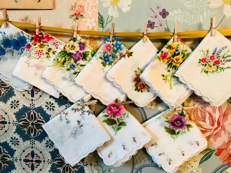 Personnellement, je craque pour le joli lot de 10 mouchoirs fleuris vintage de chez Les Jolis Cérémonies, mais ils ne sont pas toujours disponibles : https://www.etsy.com/fr/listing/831065888/ensemble-de-10-mouchoirs-fleuris