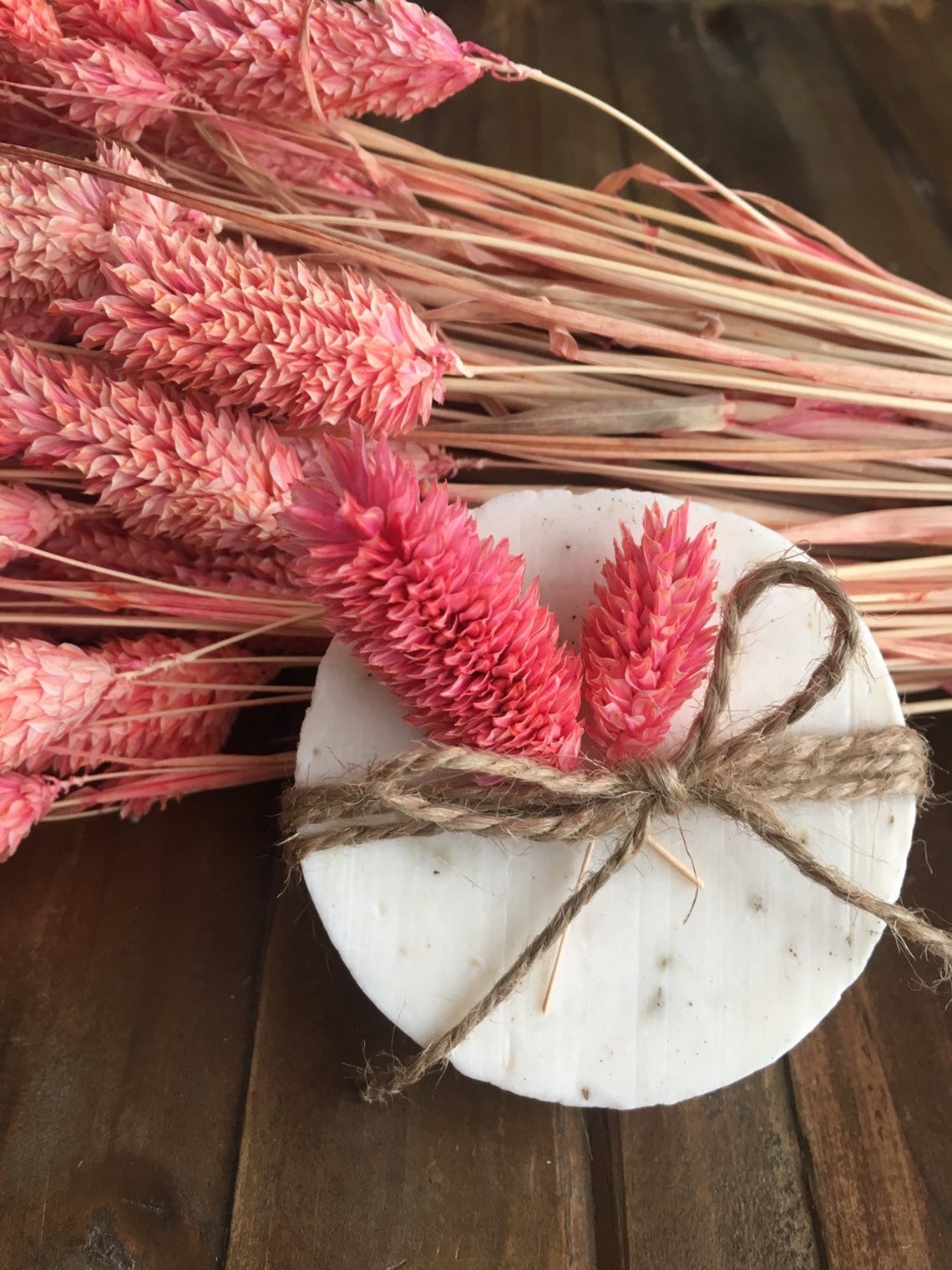 Les mariages bohèmes sont pleins de fleurs colorées, de plumes, de verdure, et parfois même de gens pieds nus… oups, on s'égare ! En tout cas, offrir de jolis petits savons avec des fleurs séchées fera un cadeau parfait. Tu peux les fabriquer toi-même ou en trouver sur Etsy, par exemple chez Ateliers LN.