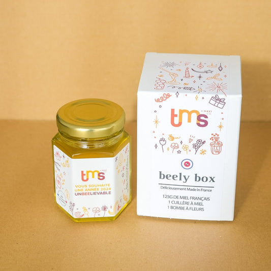 Chez Beely chaque coffret est 100% unique. La personnalisation se fait en ajoutant vos textes, logos et images sur les pots de miel et leurs packagings. Vous pouvez utiliser nos designs ou créer entièrement le design de votre coffret si vous avec une équipe créa.