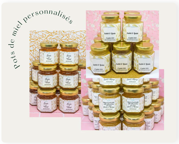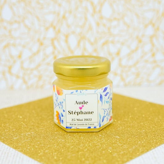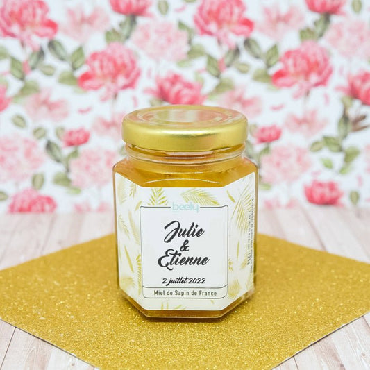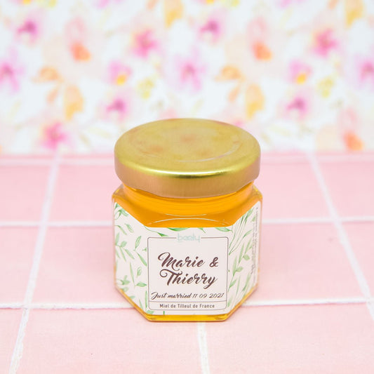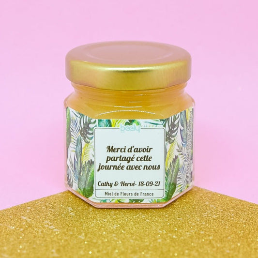 Ne cherche pas plus loin et découvre notre collection de pot de miel à personnaliser spéciale cadeau invité de mariage.