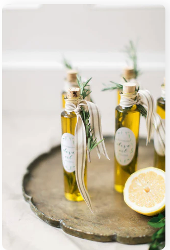 2) Des petites fioles d'huile d'oliveC’est une très bonne idée de cadeau invité surtout si tu habites dans le sud et que comme nous tu cuisines tout à l’huile d’olive !