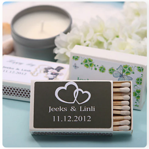 4) Des boites d'allumettes personnalisésTout le monde à un jour besoin d’une allumette ! et c’est avec plaisir que tes invités utiliseront ces petites allumettes tout au long de l’année.